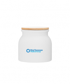 16.9 oz stoneware: matte white out / glossy white in with push-on bamboo lid; Hand wash recommended; Microwave safe with non-metallic imprint; 4 3/16 h x 4 3/16 (w/handle) w ; 500mL.