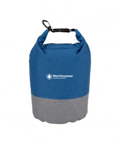 Keeps your items dry and comes in a chic two-tone design. It has a roll top closure with a buckle to connect to other bags and a carabiner clip to connect to a backpack or tether to a raft rope. Made from heathered 300D polyester, it has a 5 liter capacity and can float if dropped in water. Complies with Prop 65. 7" W x 13" H x 7" D