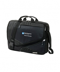 Fits most 17" laptops. Organizer panel with pen loops, padded external hard drive pocket. ID card pocket. Front zippered pocket for small items. Hidden magazine compartment. Pullman handle attachment sleeve. Laptop sleeve: 12.75"x16"x1.25". Fits most 17" laptops. 17" W x 14" H x 4" D.